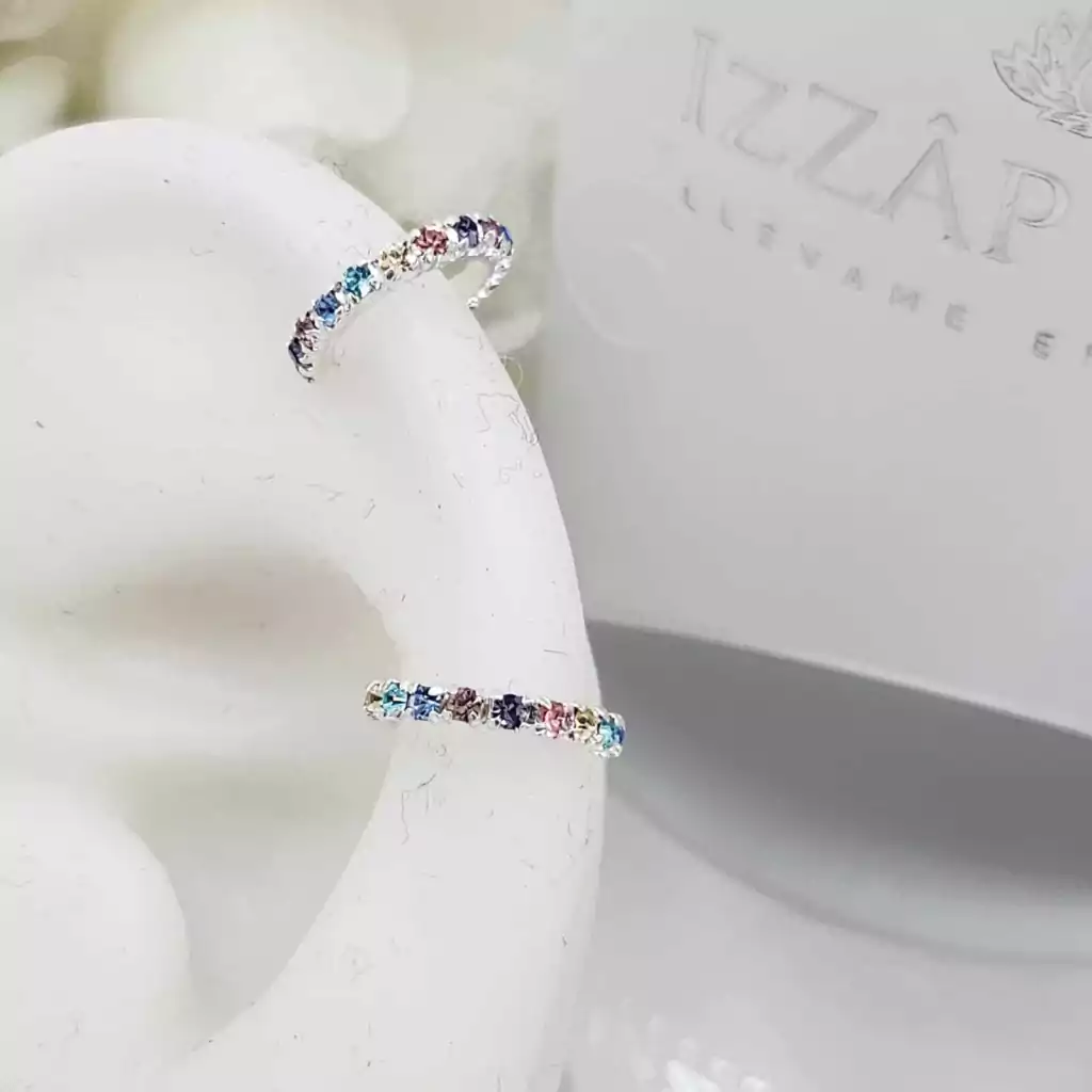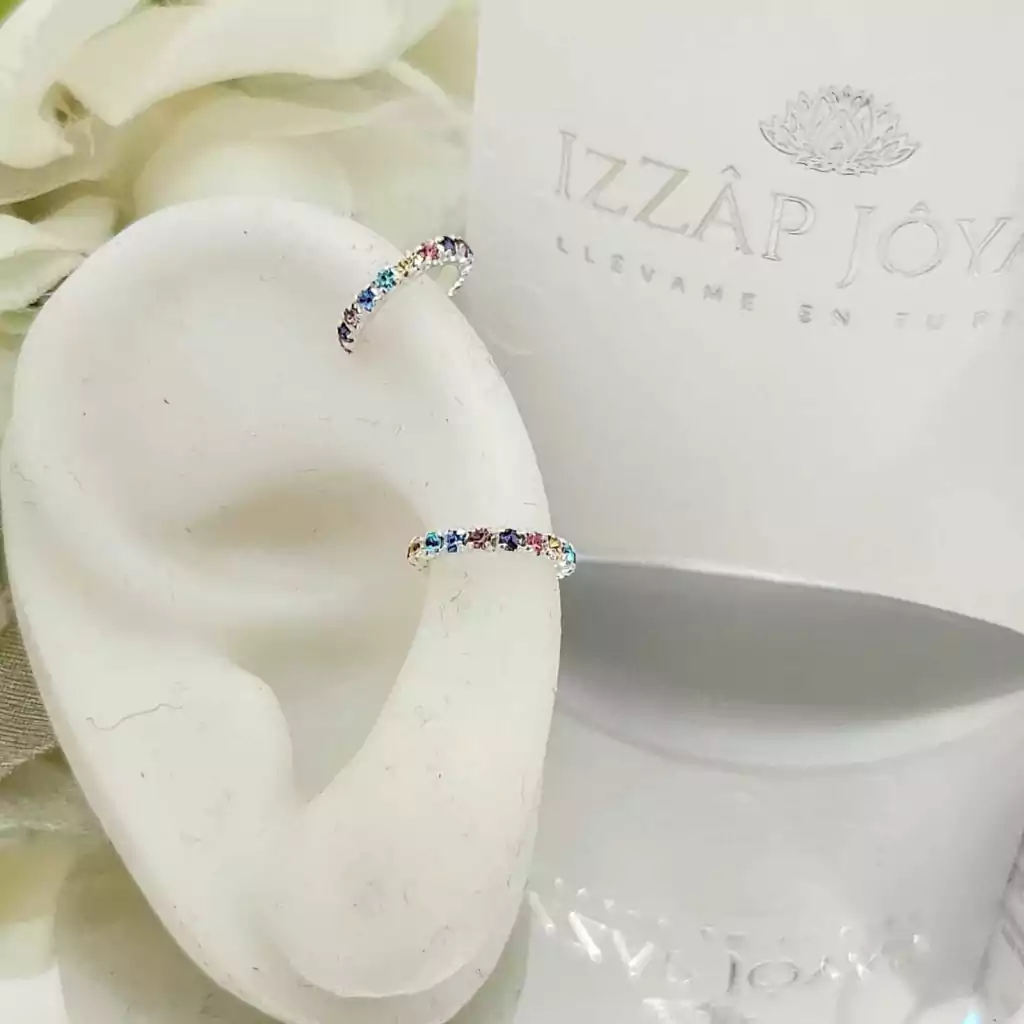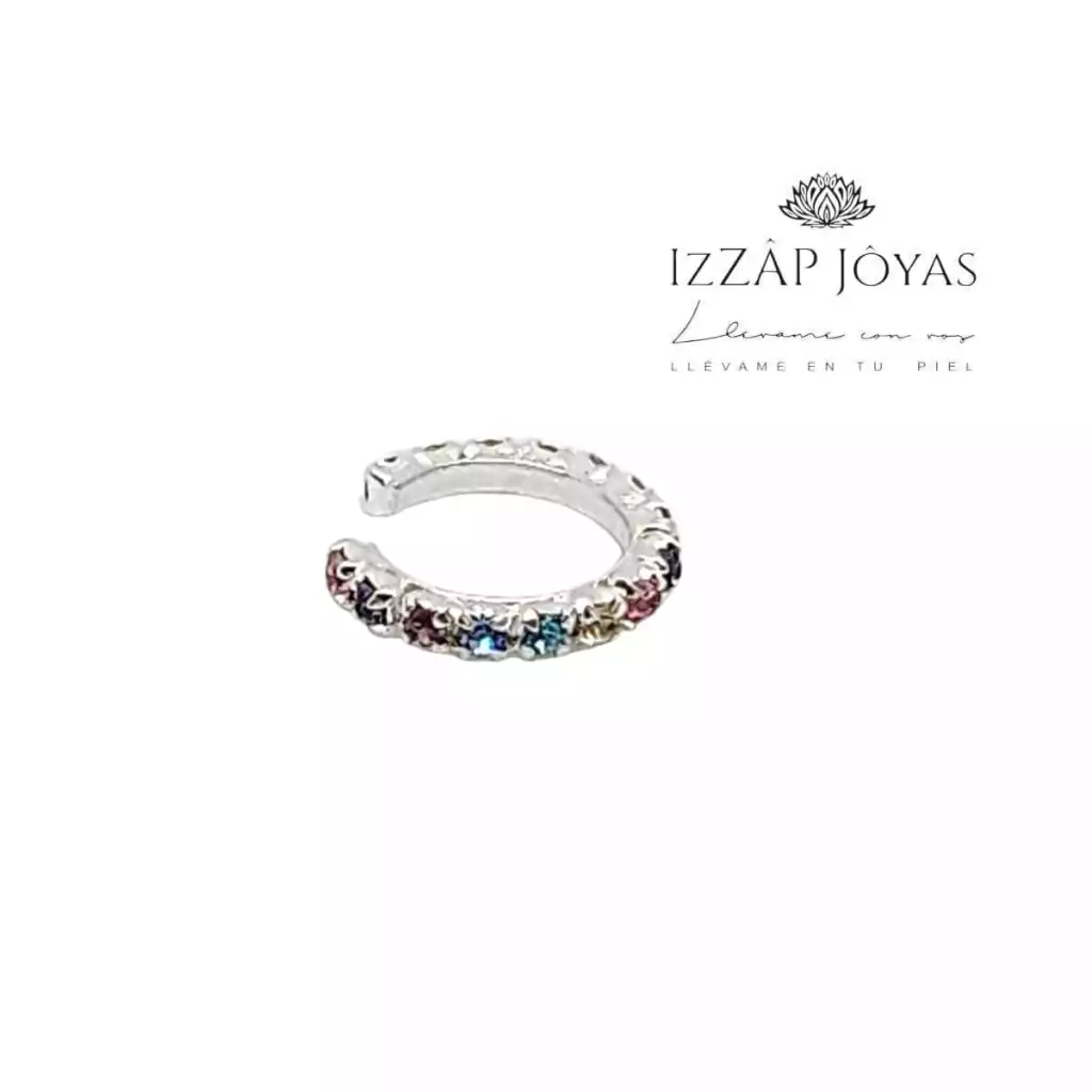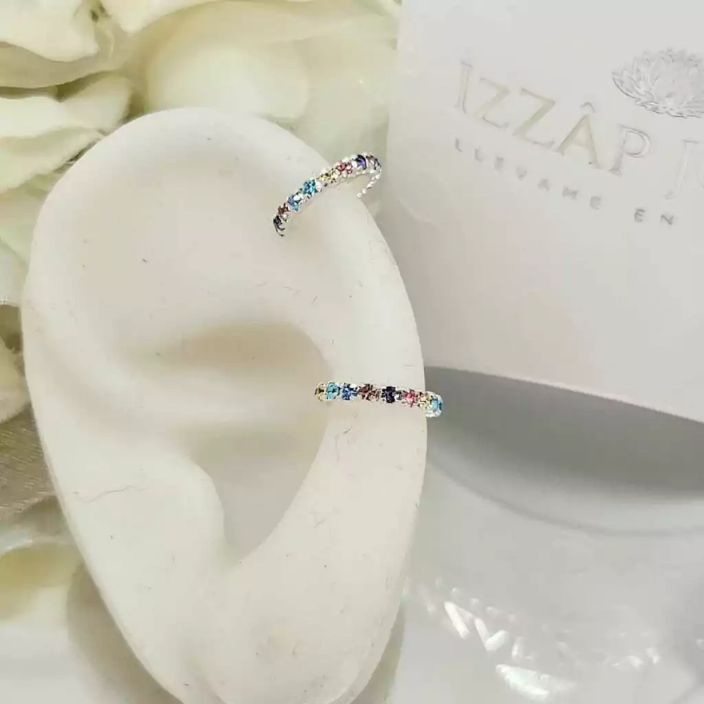 Aro Solitario Cuff Cubics MULTICOLORES - Plata 925