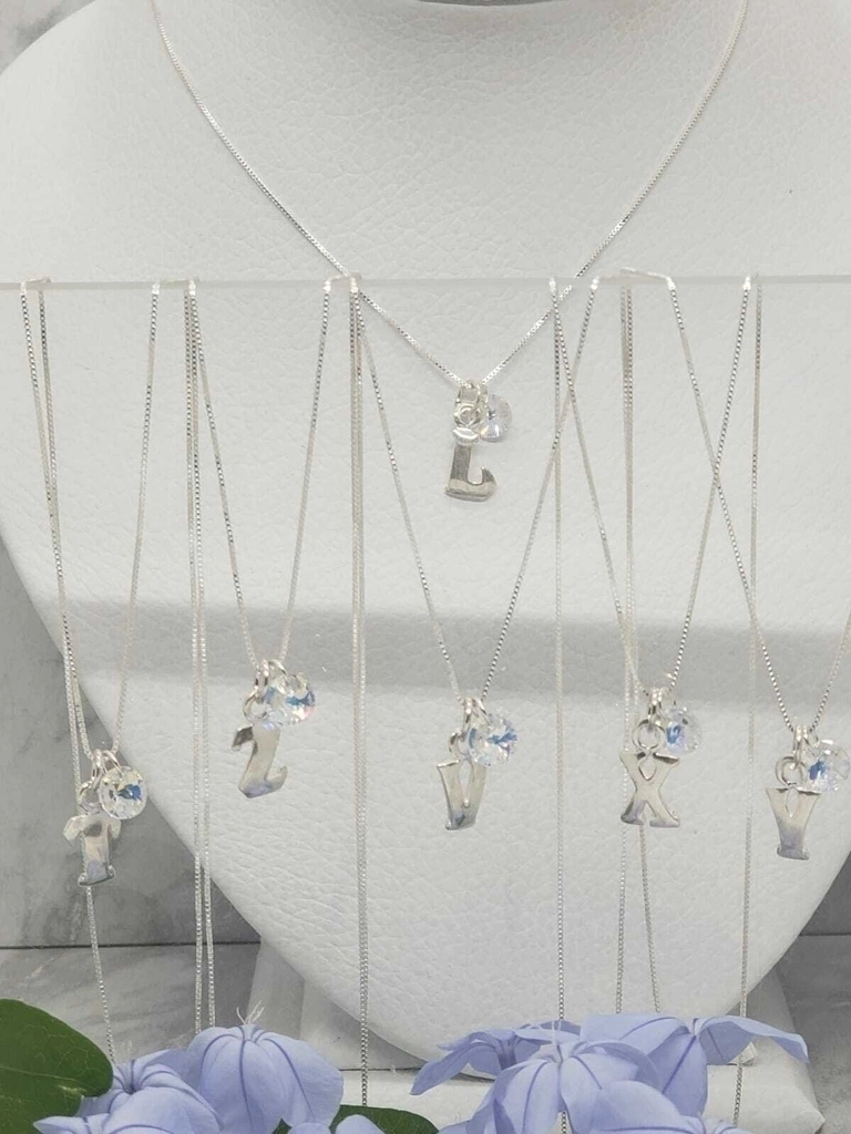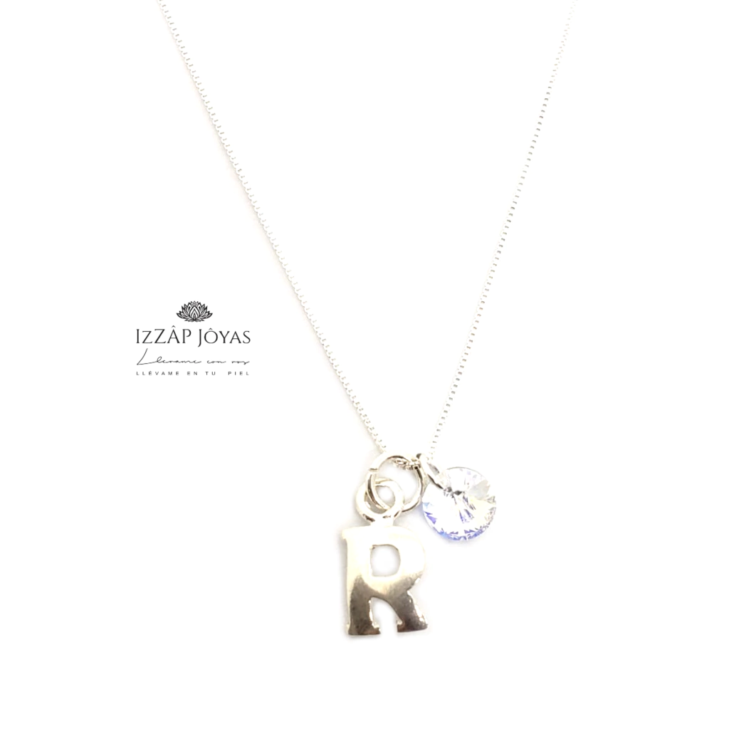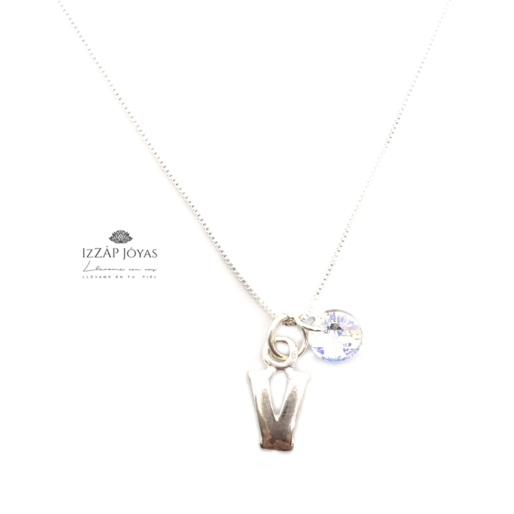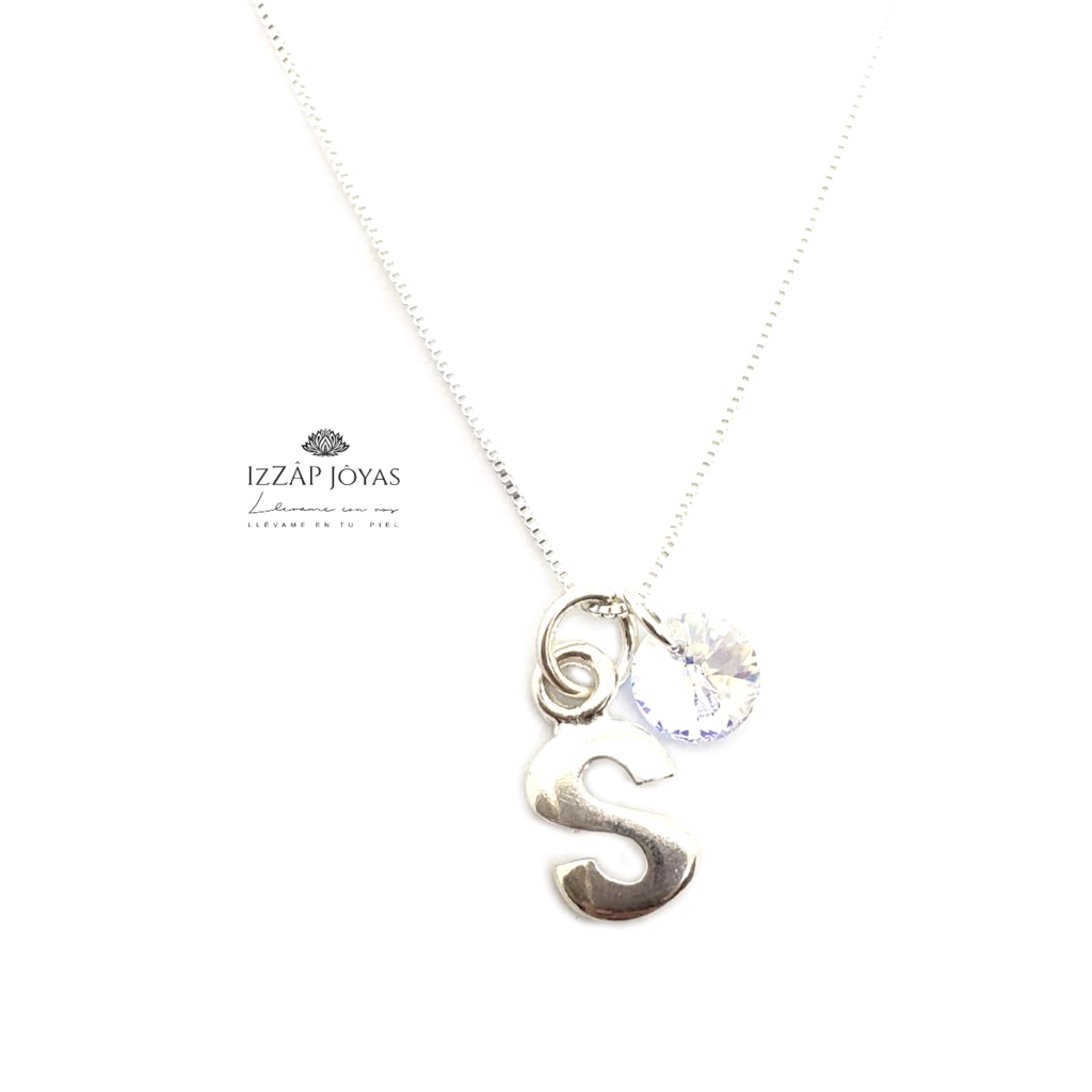 CADENA con Mini Inicial y Mini Cristal Swarovski Elements ® Plata 925