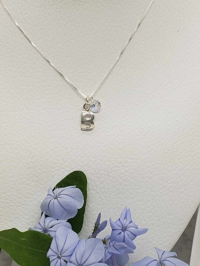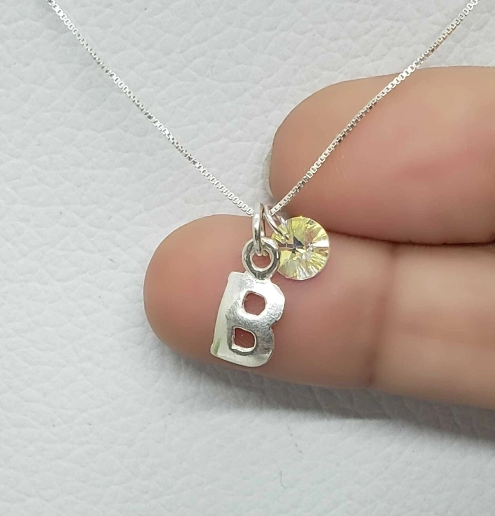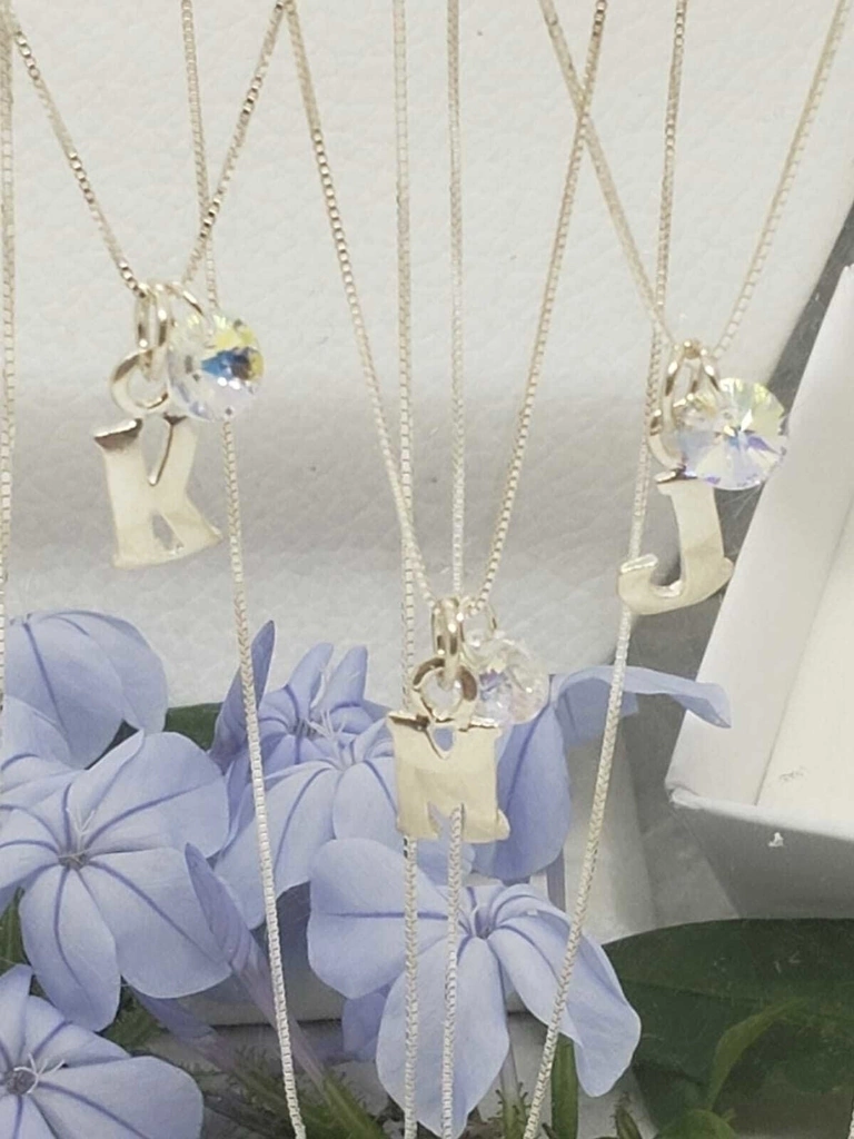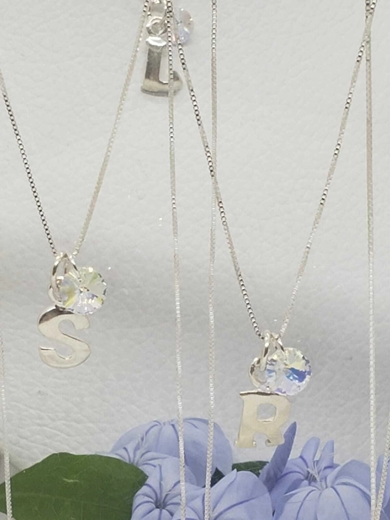 CADENA con Mini Inicial y Mini Cristal Swarovski Elements ® Plata 925