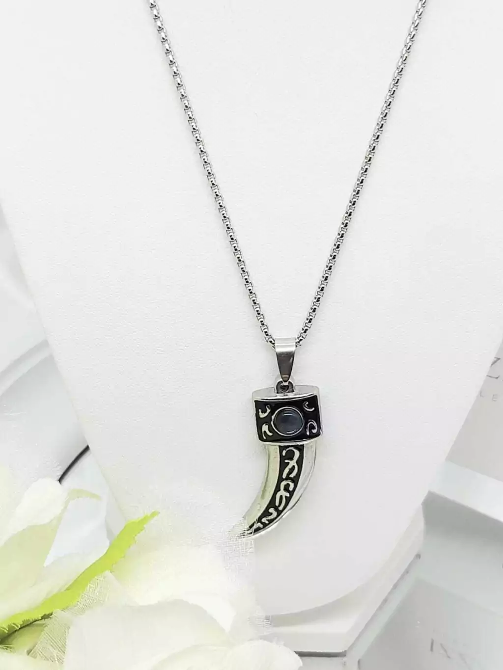 COLLAR de ACERO QUIRURGICO " COLMILLO de la SUERTE Y PROTECCIÓN " DOBLE FAZ. (dos dijes en uno)