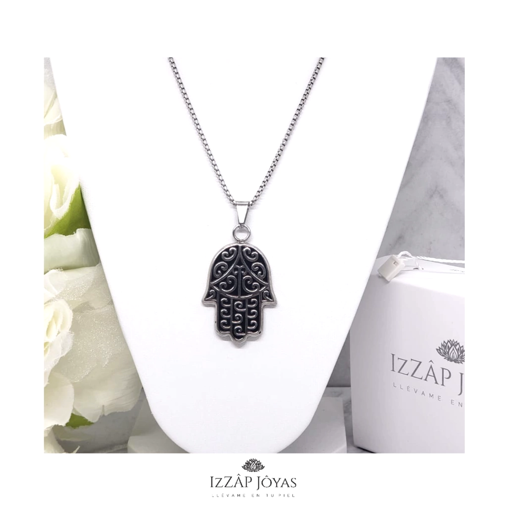 COLLAR de ACERO QUIRURGICO MANITO DE FATIMA ESMALTADA Y CADENA ROLÓ CUADRADA.