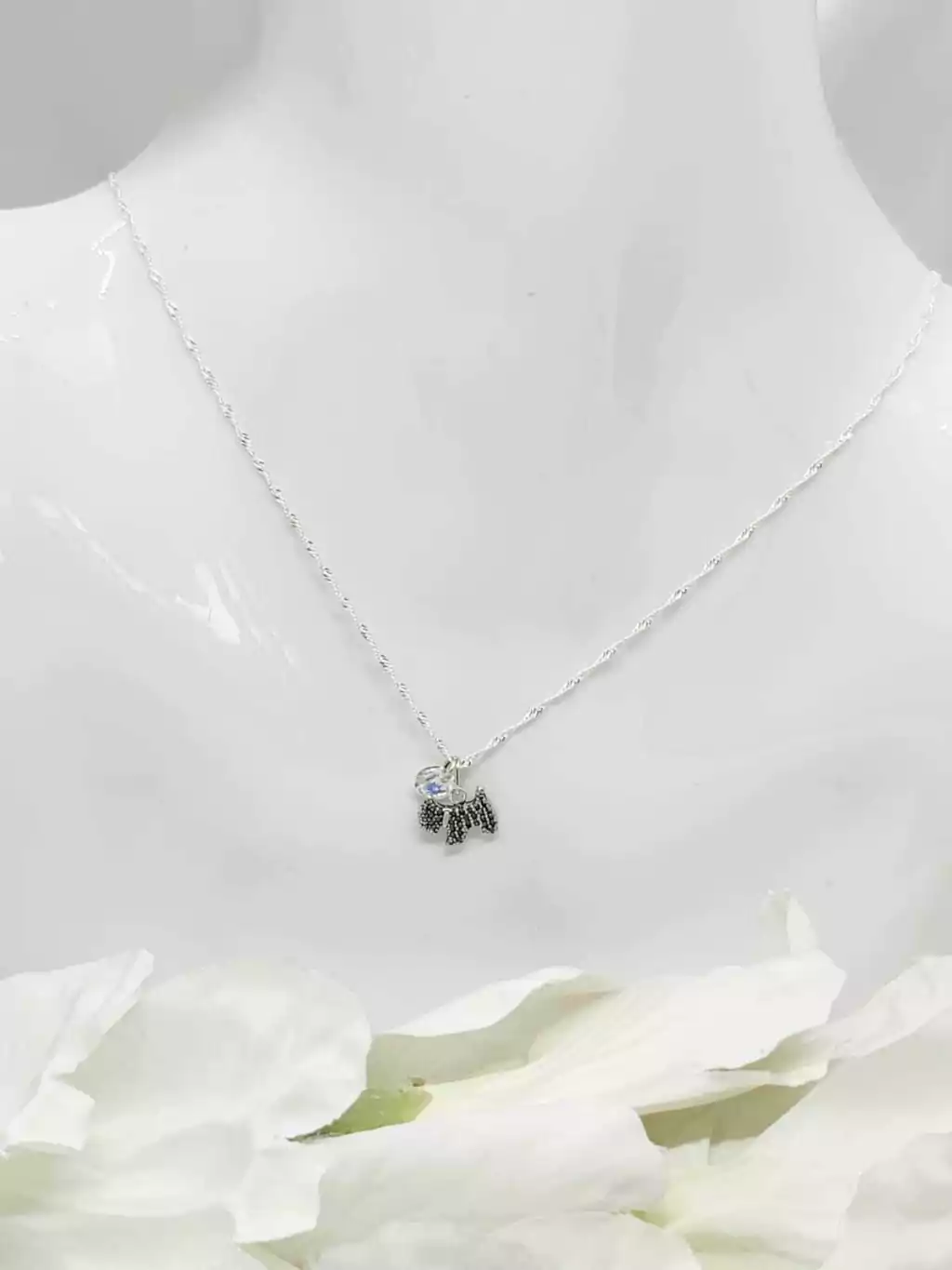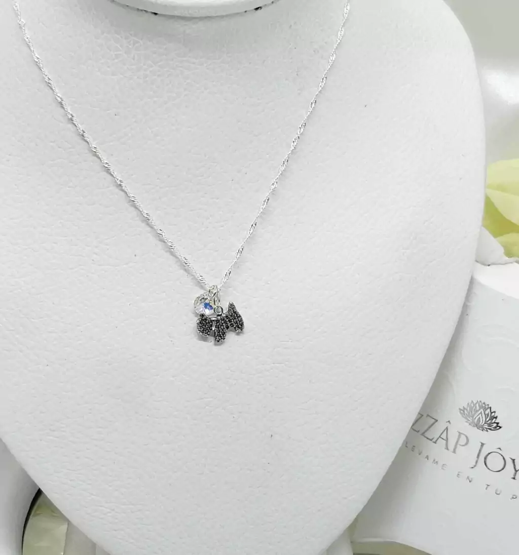 Collar " PERRITO con MARQUESITAS y mini cristal Swarovski "- Plata 925