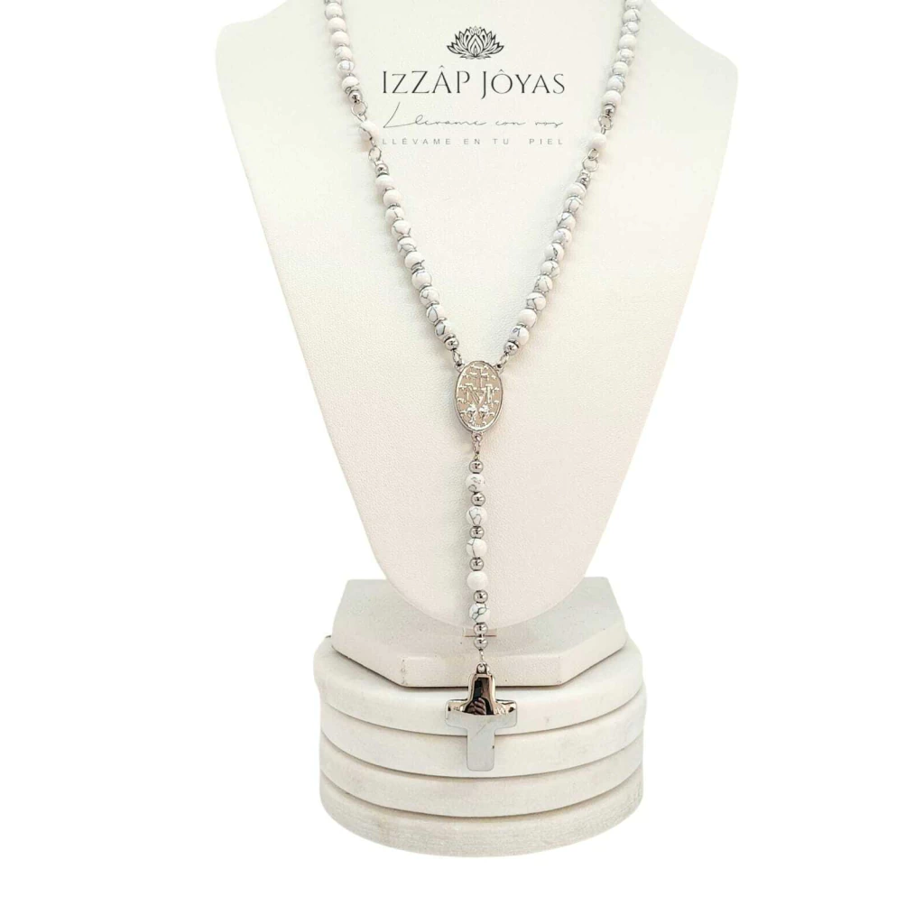 ROSARIO de ACERO QUIRURGICO CON PIEDRAS BLANCAS HOWLITA