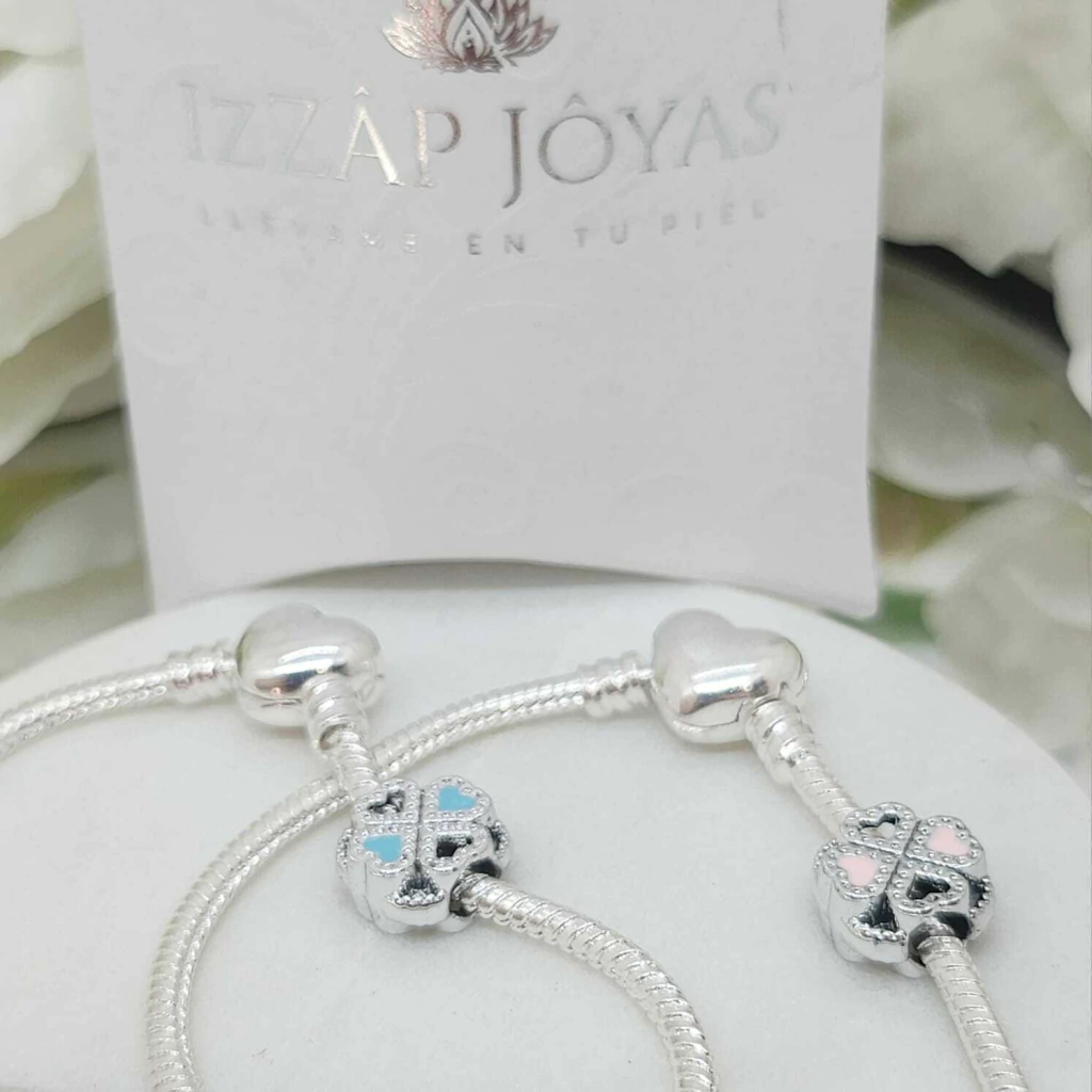 Pulsera CIERRE CORAZON y dije pasante Laminado PREMIUM PLATA