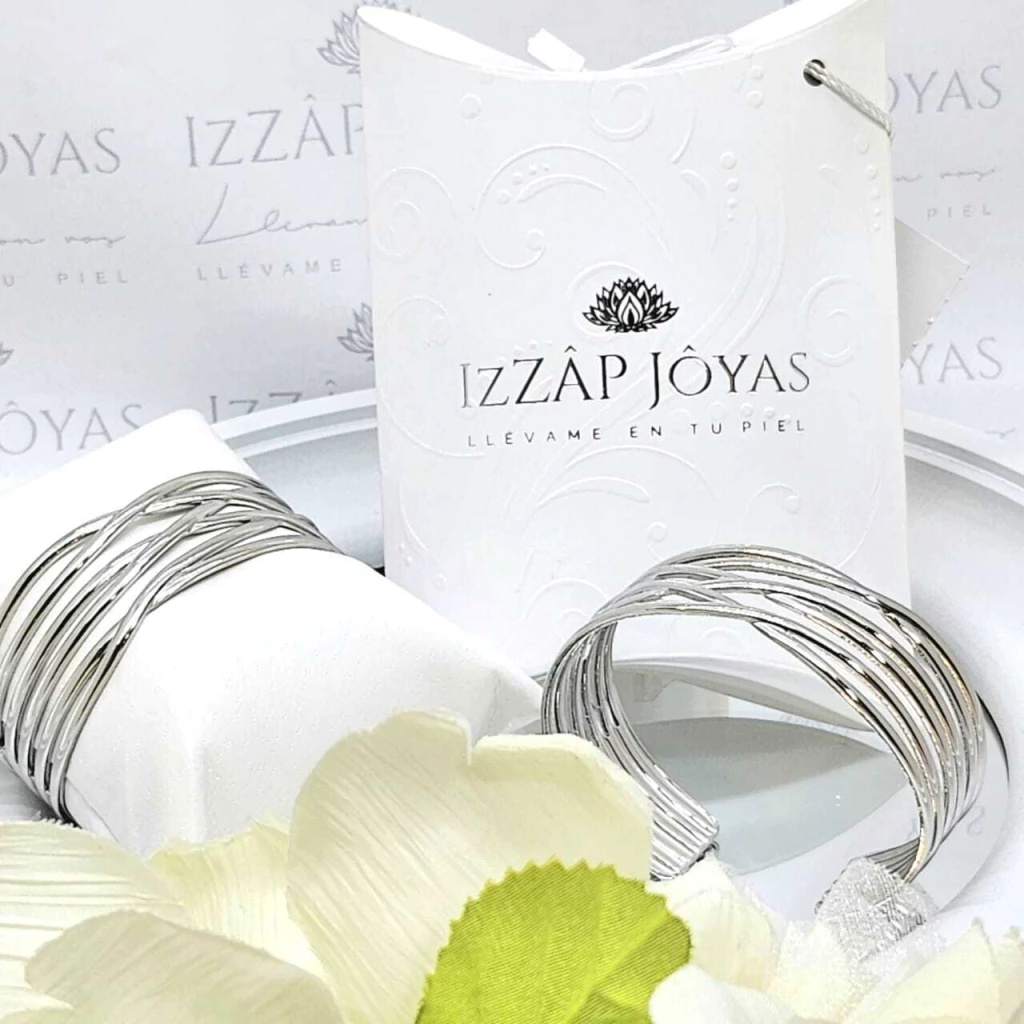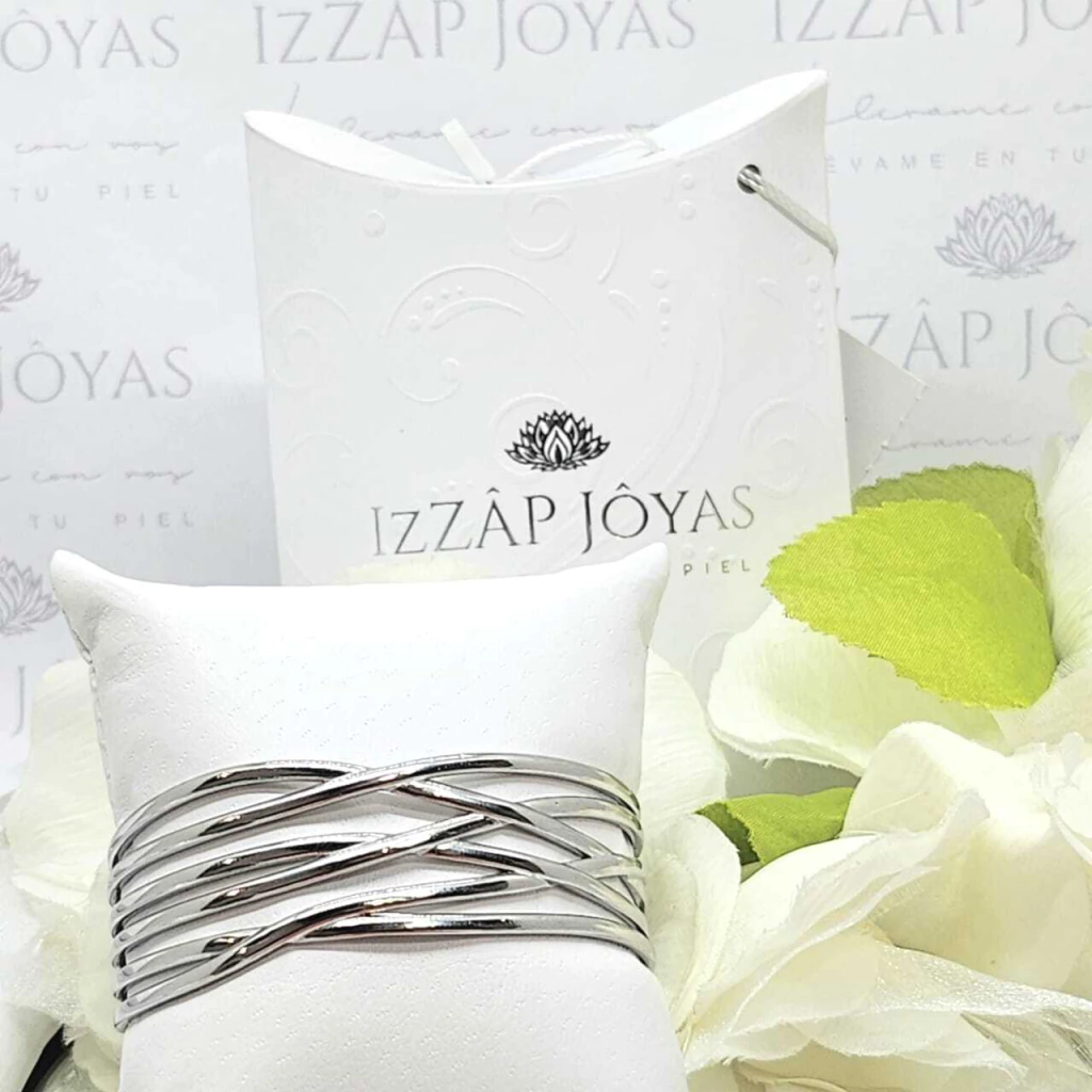 PULSERA ESCLAVA SEMIABIERTA AJUSTABLE - ACERO BLANCO