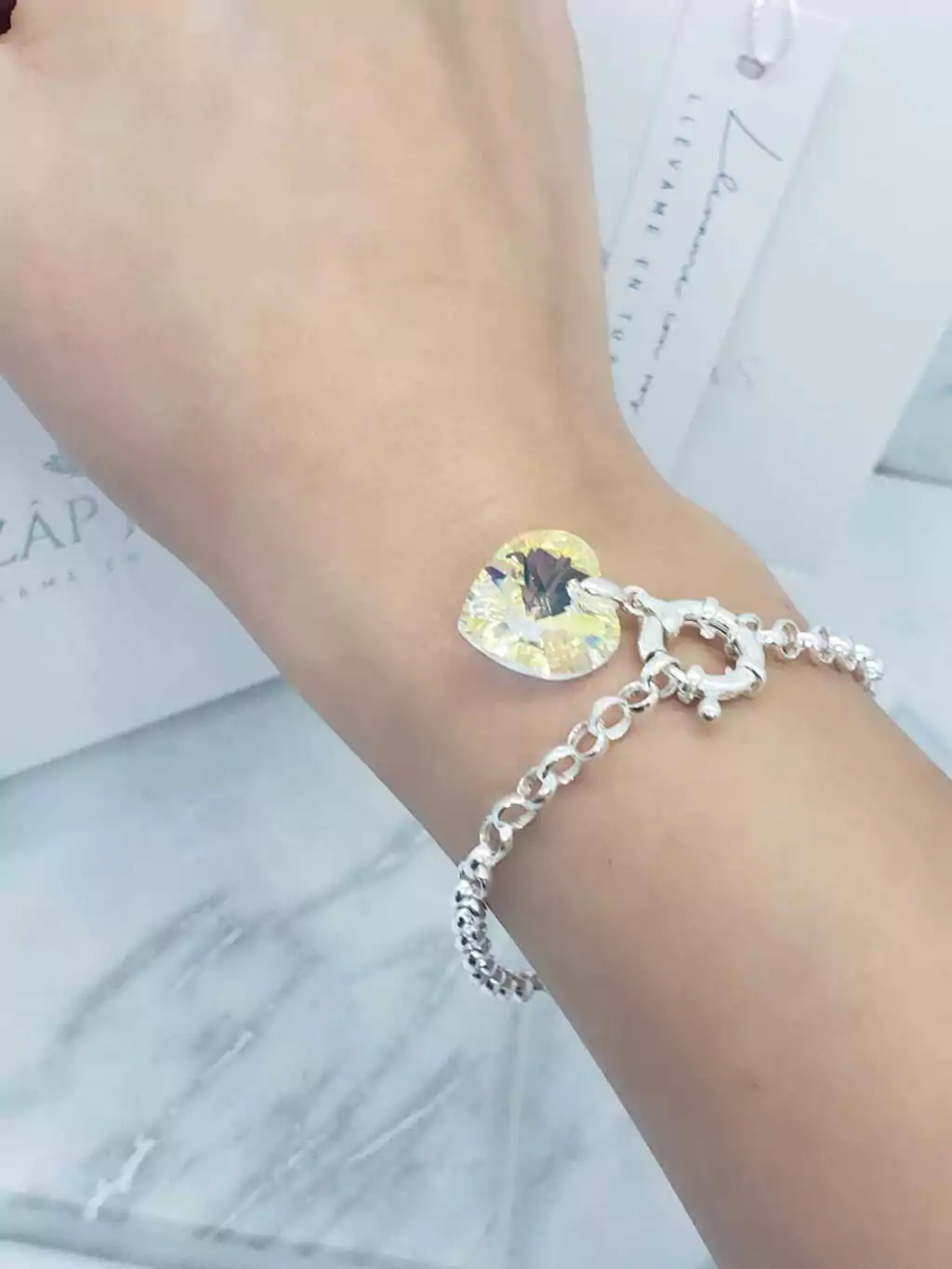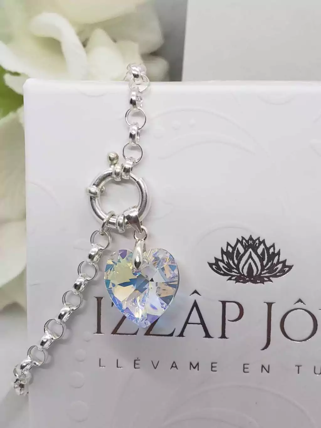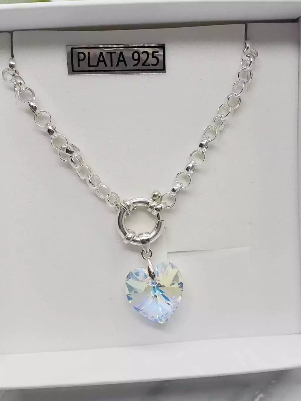 PULSERA ROLO 4 MM + DIJE CRISTAL SWAROVSKI® CORAZON 14mm CON CIERRE MARINERO - PLATA 925